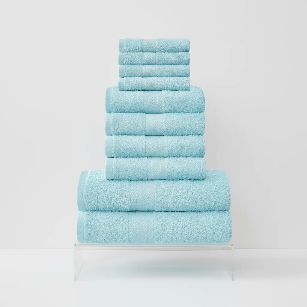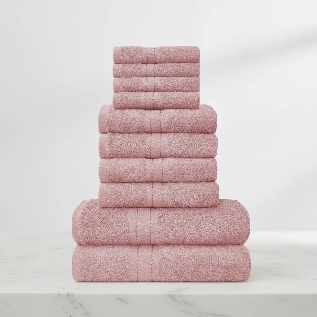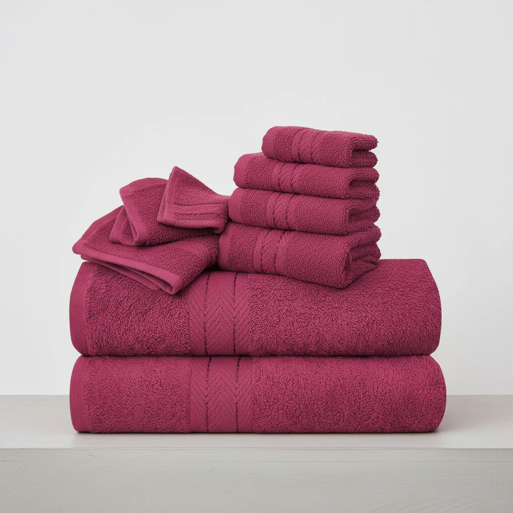 - Maten: gezichtsdoek 30×30 cm, handdoek 50×80 cm, badlaken 70×120 cm, badlaken 80×140 cm