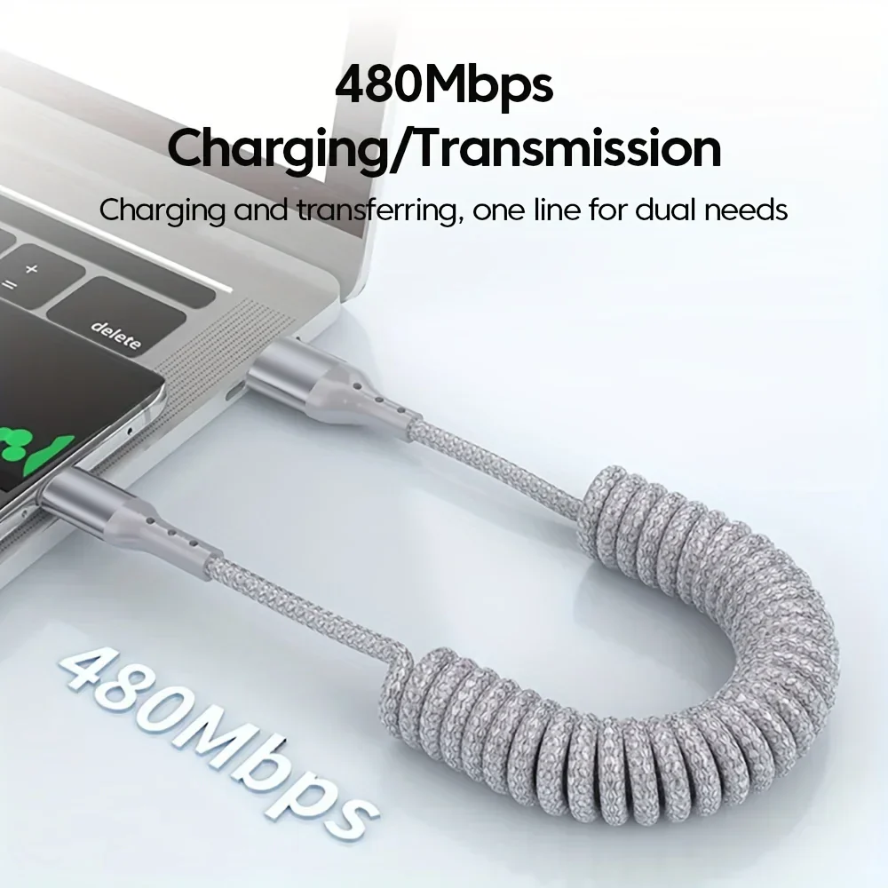 Deze USB-C kabel met veerontwerp ondersteunt tot 100W PD snelladen met snelle gegevensoverdracht. Het opgerolde ontwerp voorkomt klitten terwijl het bereik vergroot, wat het ideaal maakt voor thuis, op kantoor of in de auto. Robuust en toch flexibel, het is beschikbaar in meerdere USB-naar-C en C-naar-C varianten.