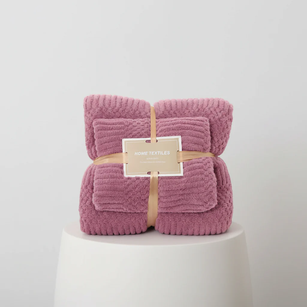De zachte textuur omarmt de huid en zorgt voor direct comfort. Elke aanraking voelt luxe en rustgevend aan.