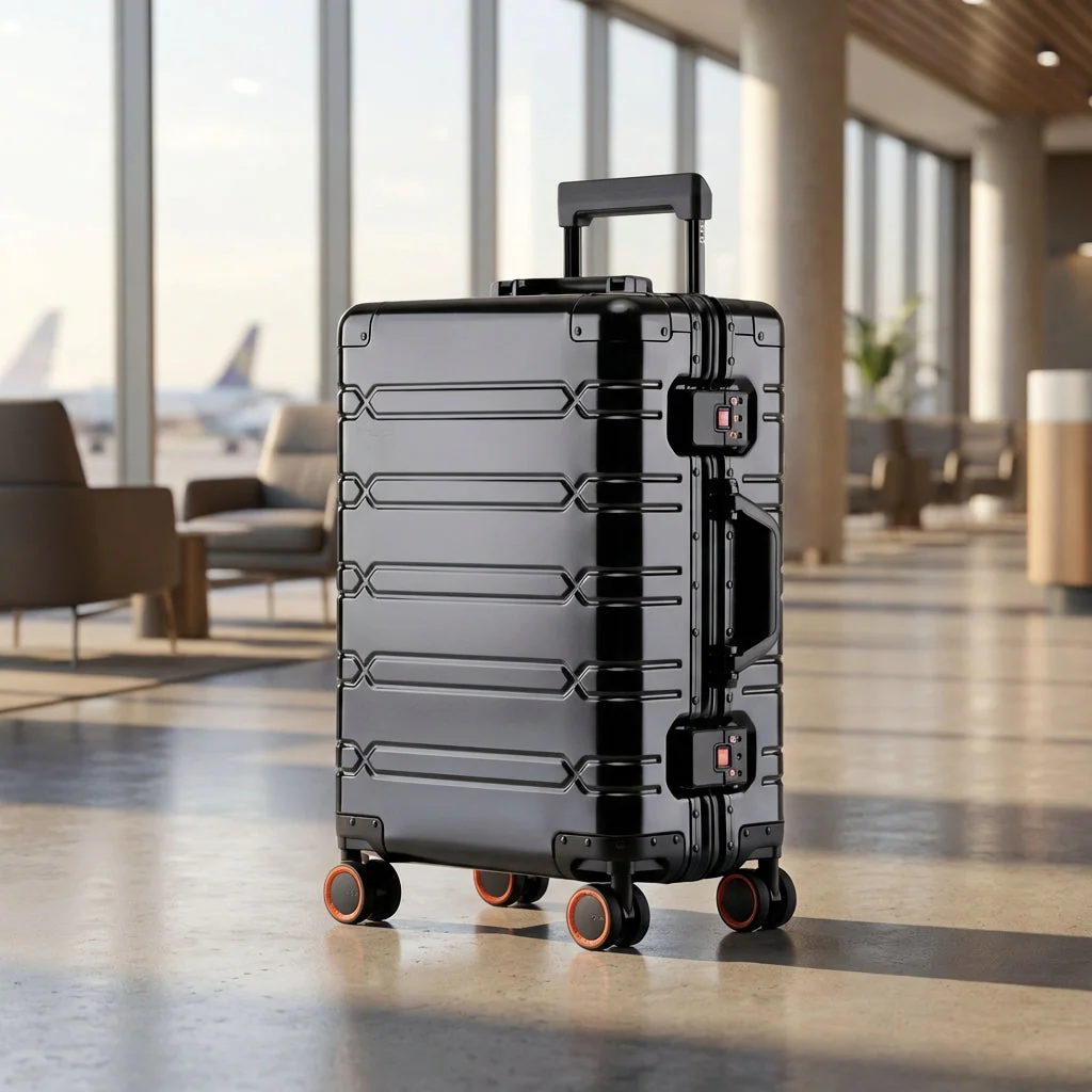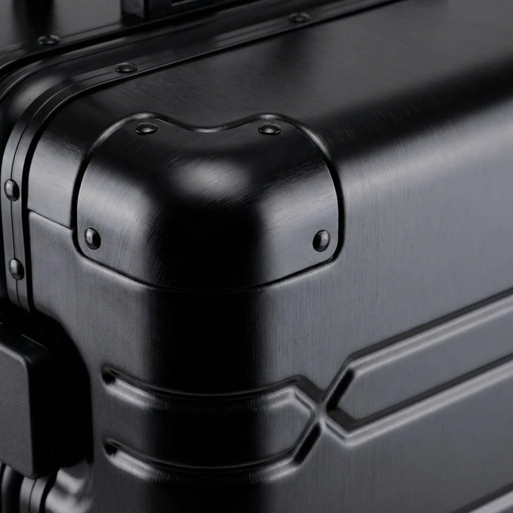 De stevige aluminiumlegering biedt betrouwbare bescherming tegen stoten en slijtage. Dat geeft rust wanneer je koffer behandeld wordt tijdens transport.