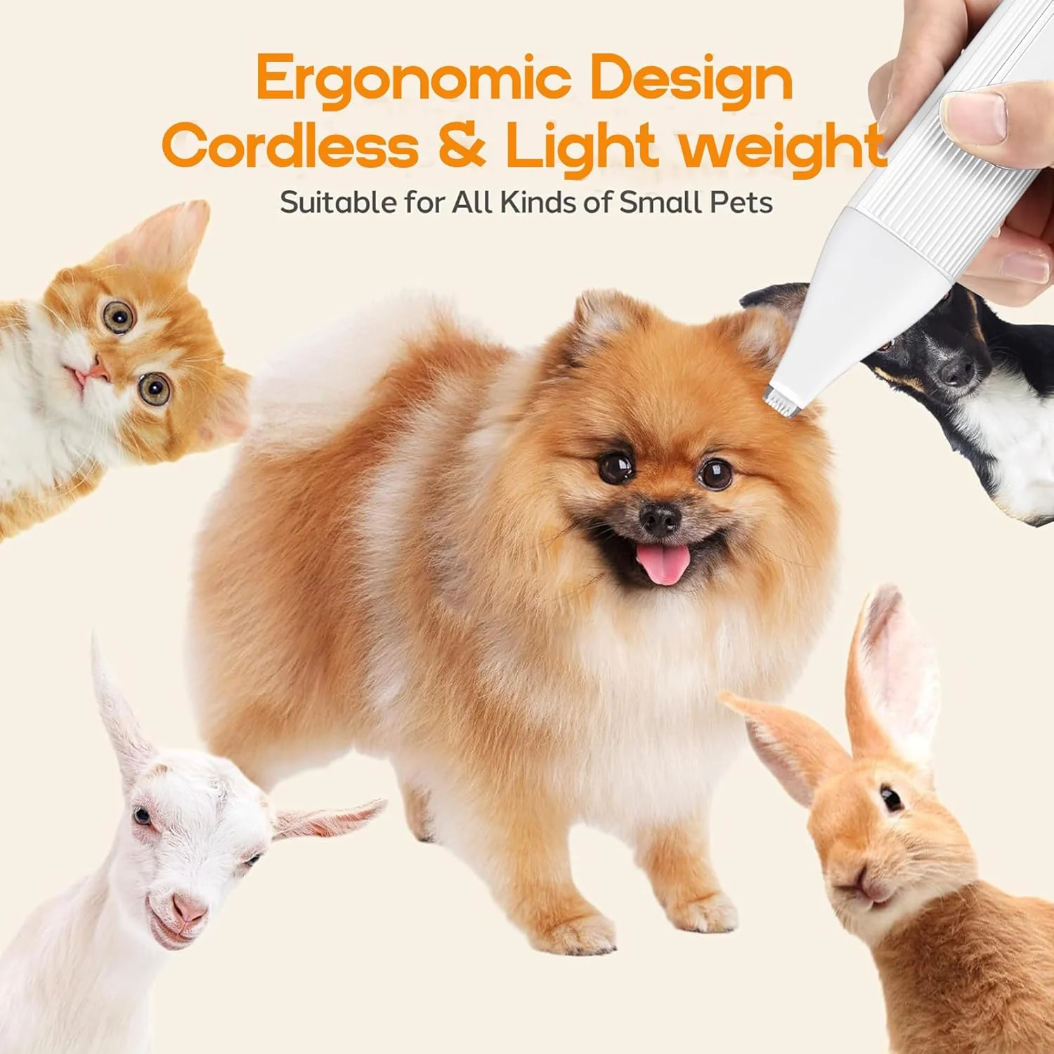 Deze draadloze 4-in-1 huisdierverzorgingsset bevat drie verwisselbare trimmerkoppen en een nagelvijl voor complete verzorging van honden en katten. Dankzij het stille ontwerp (<50 dB) blijft je huisdier ontspannen tijdens het trimmen. De IPX7-waterdichte behuizing maakt reinigen eenvoudig – spoel de koppen af onder stromend water. Eén oplaadbeurt biedt tot 2 uur gebruikstijd. Roestvrijstalen messen zorgen voor een veilige en precieze verzorging. Lichtgewicht en compact, ideaal voor thuisgebruik of op reis.