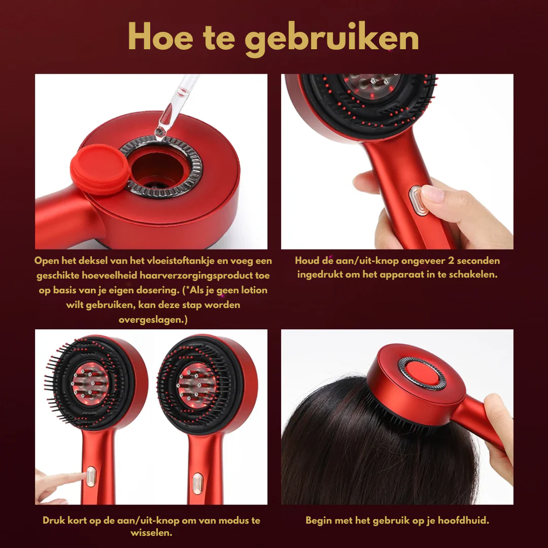 Zeg vaarwel tegen dunner wordend haar en een droge hoofdhuid. De 6-in-1 Hoofdhuid Therapie Kam stimuleert de bloedsomloop en helpt haargroei te bevorderen, terwijl het spanning en stress verlicht met een rustgevende massage.