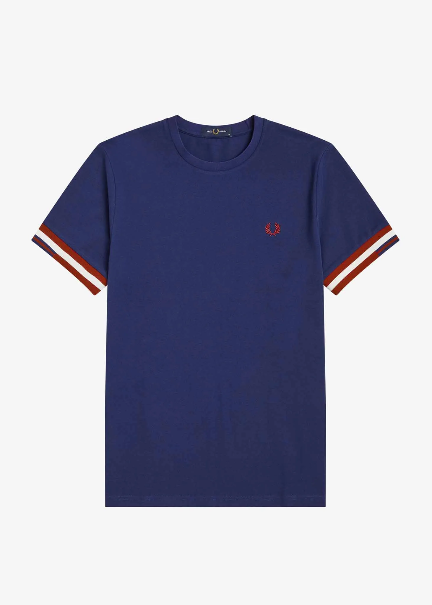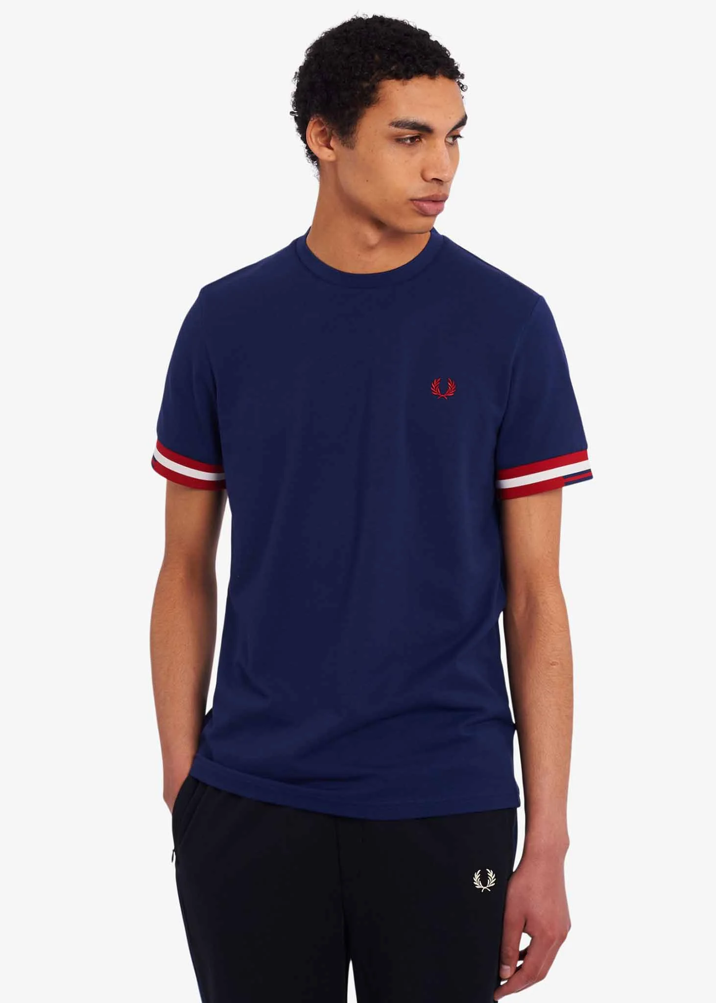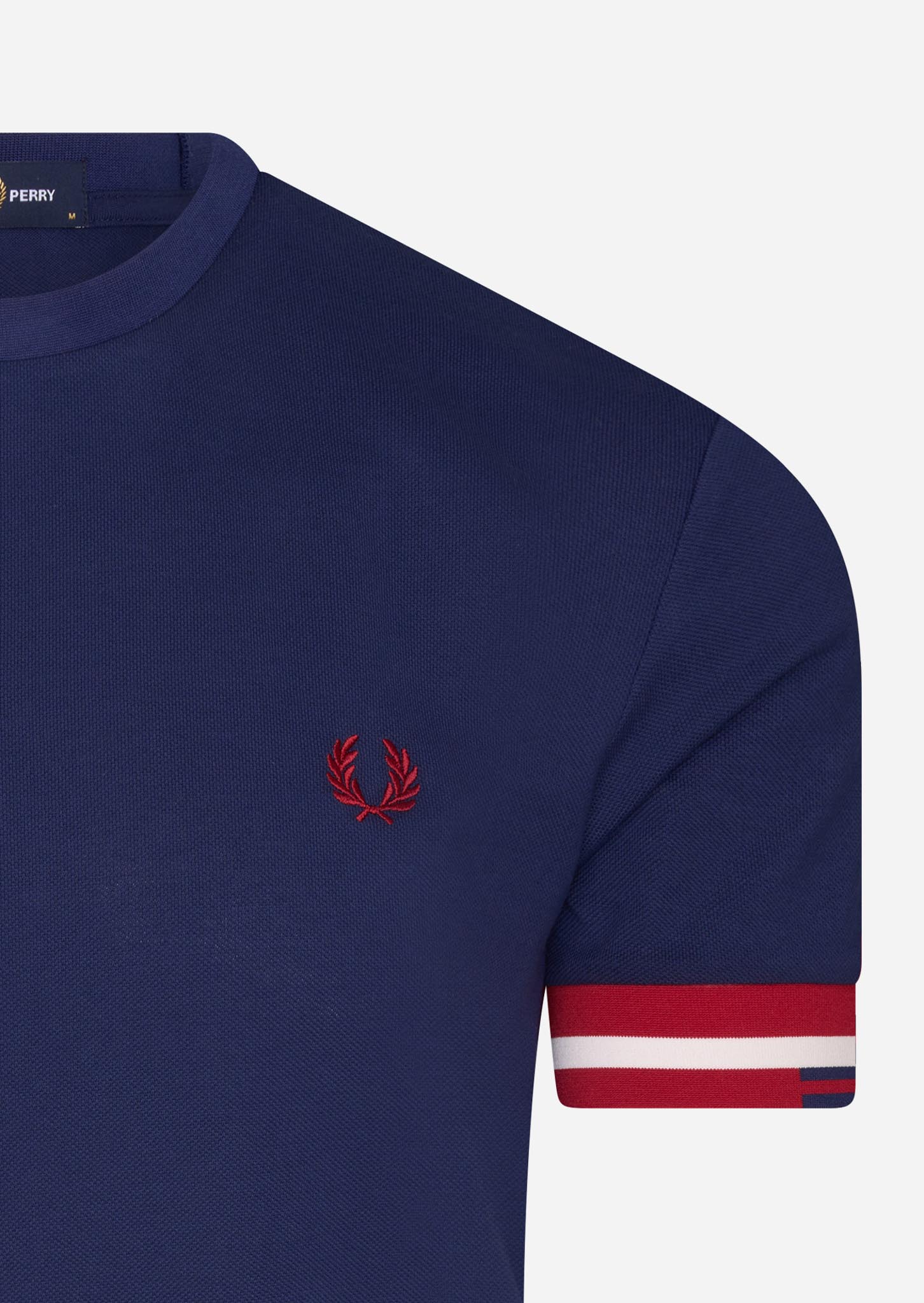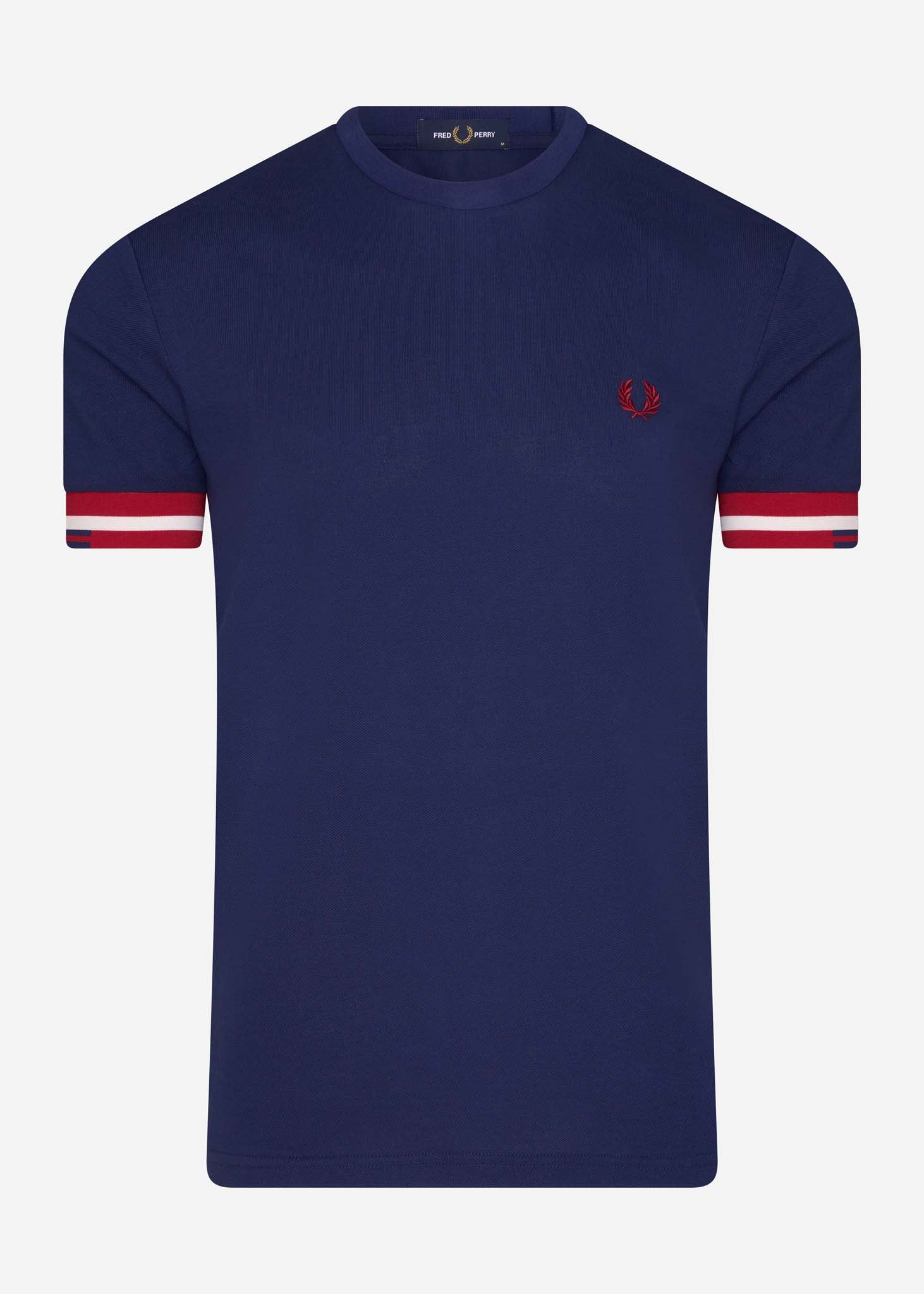 De kraag en de manchetten van dit t-shirt zijn gedetailleerd met gekleurde strepen. Deze zijn weergegeven in een uniek patroon, wat dit t-shirt van Fred Perry een bijzondere touch geeft. Uiteraard is het bekende logo van het merk geborduurd op de linkerborst.
