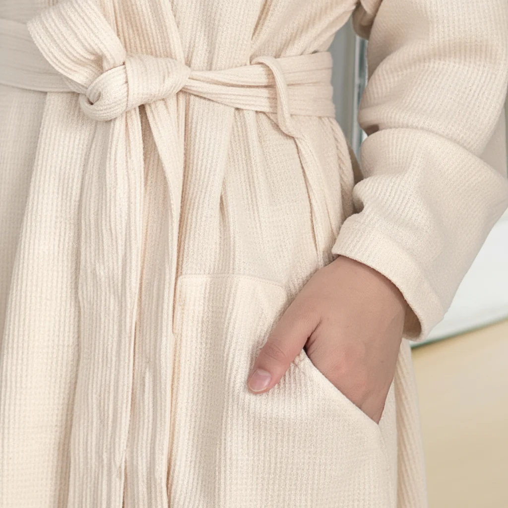 De meegeleverde riem maakt een individuele pasvorm mogelijk. Je kunt de ochtendjas naar jouw wensen aanpassen.