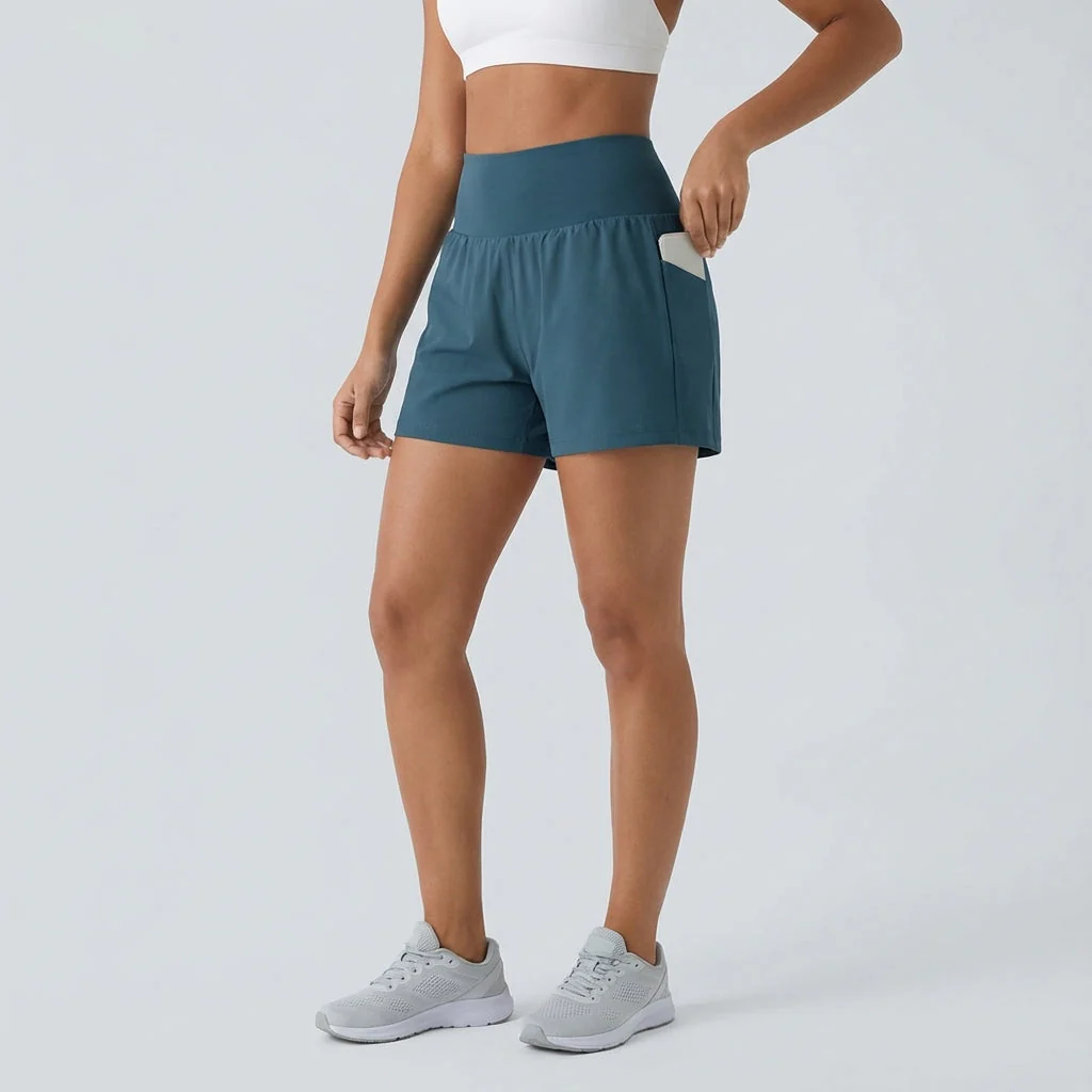 Veel sporters kennen het probleem: oncomfortabele shorts die omhoog kruipen of te weinig steun bieden bij intensieve oefeningen. Deze shorts bieden een oplossing door een geïntegreerde binnenbroek te combineren met een losse buitenlaag. De hoge taille ondersteunt de middenriff en zorgt voor een veilige pasvorm zonder te knellen. Zijzakken en een discrete achterzak maken het opbergen van je telefoon en kleine spullen eenvoudig.