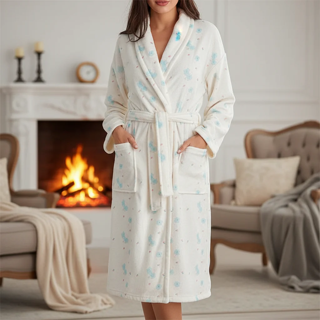 Kouwe ochtenden en oncomfortabele avonden kunnen vaak het laatste beetje ontspanning wegnemen. Een knus kledingstuk dat warm en tegelijkertijd stijlvol is, creëert onmiddellijk een gevoel van geborgenheid. Zachte flanel omhult de huid op een aangename manier en houdt behaaglijke warmte vast. Het subtiele bloemenpatroon til het humeur op en geeft een vrouwelijke uitstraling.