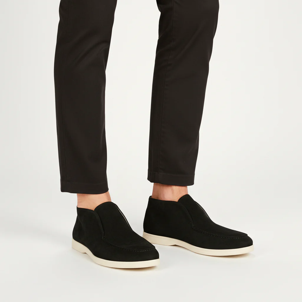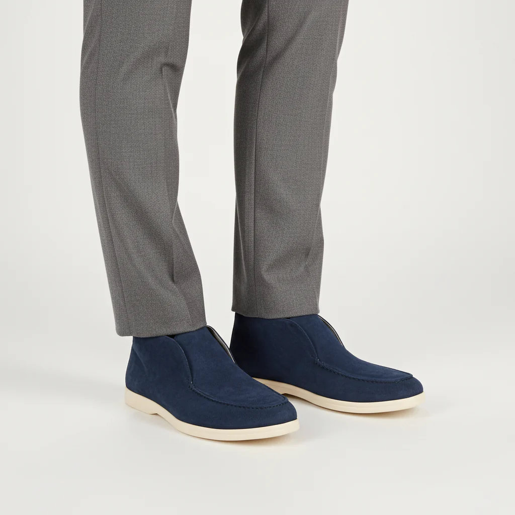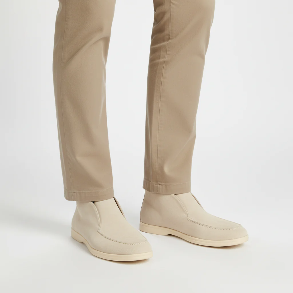 - Materiaal: Bovenmateriaal van kalfsvelours en volledig leren binnenzool