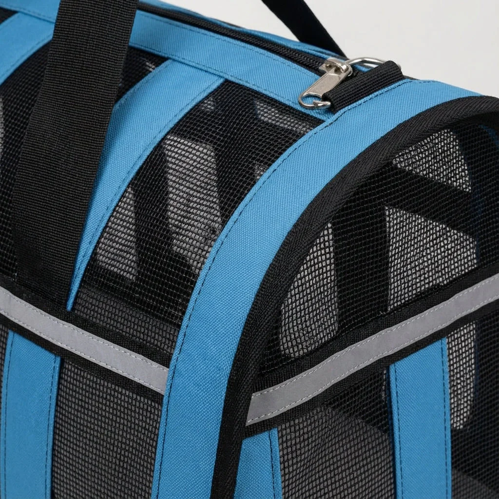 Grote mesh-zijkanten zorgen voor constante luchtcirculatie en contact tussen jou en je huisdier. Dit vermindert stress en voorkomt oververhitting tijdens warme dagen.