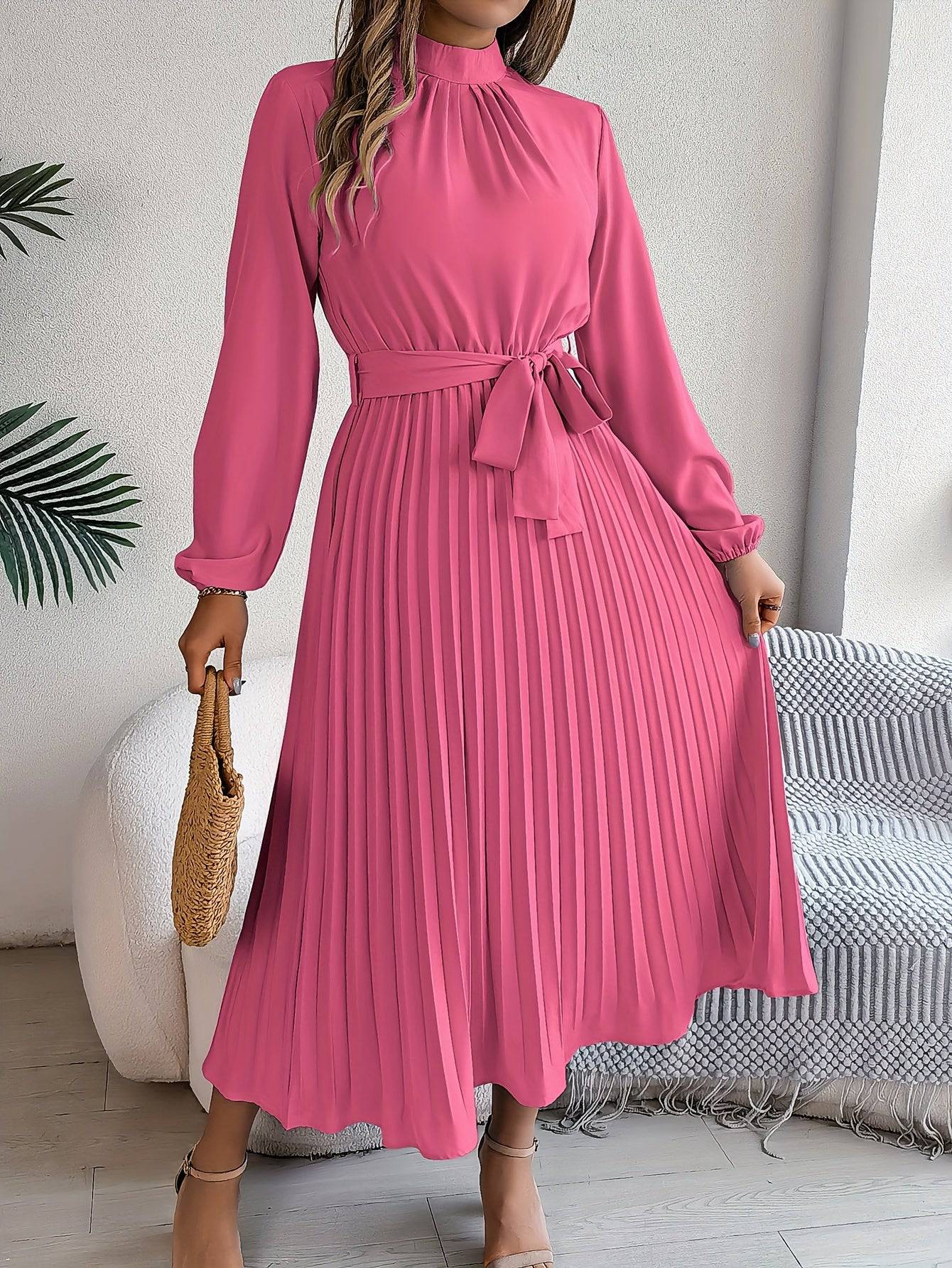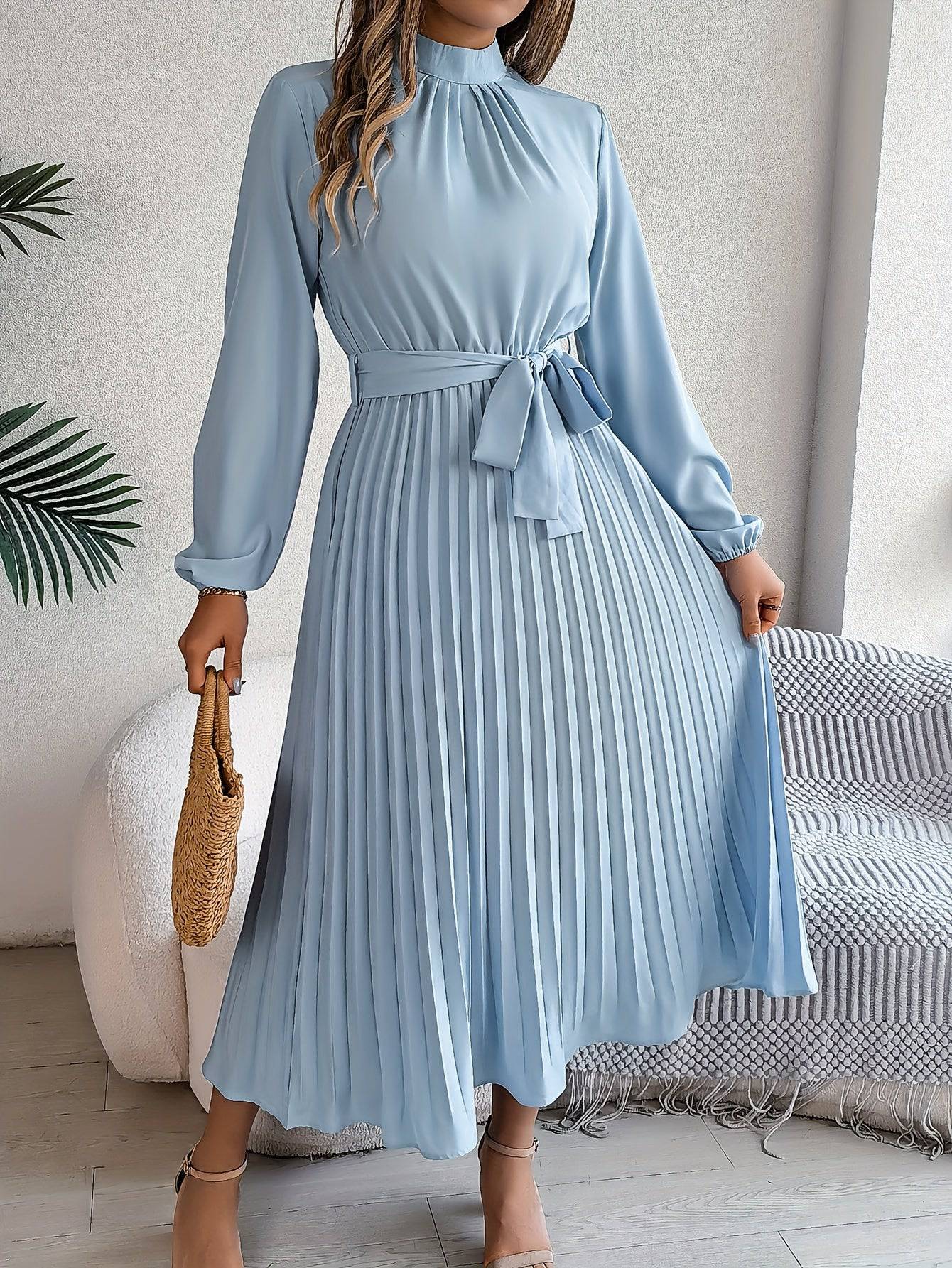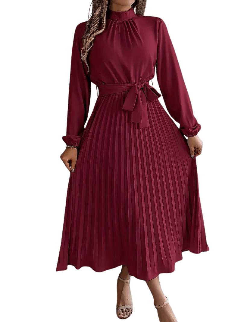 Elegante Maxi Jurk met Hoge Kraag