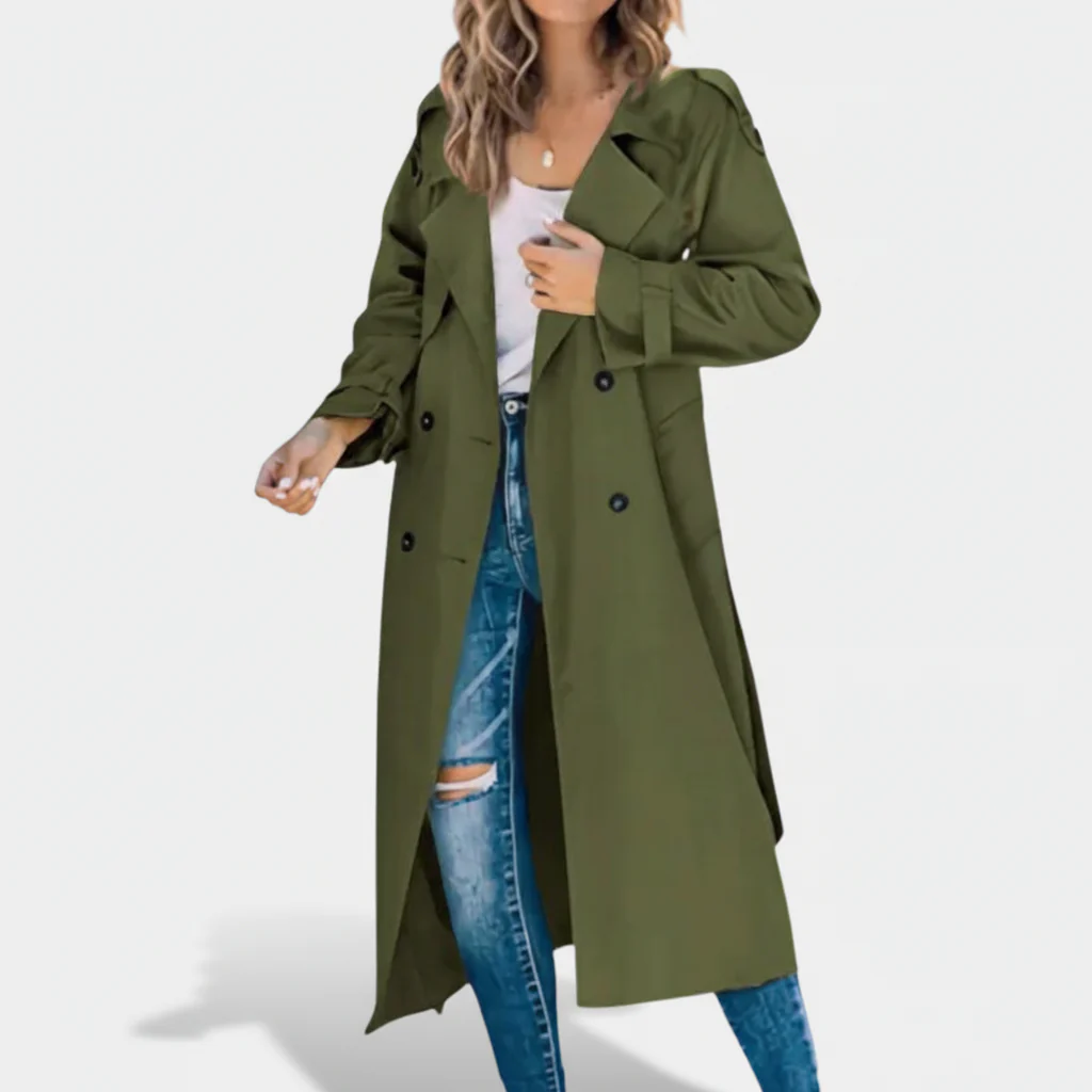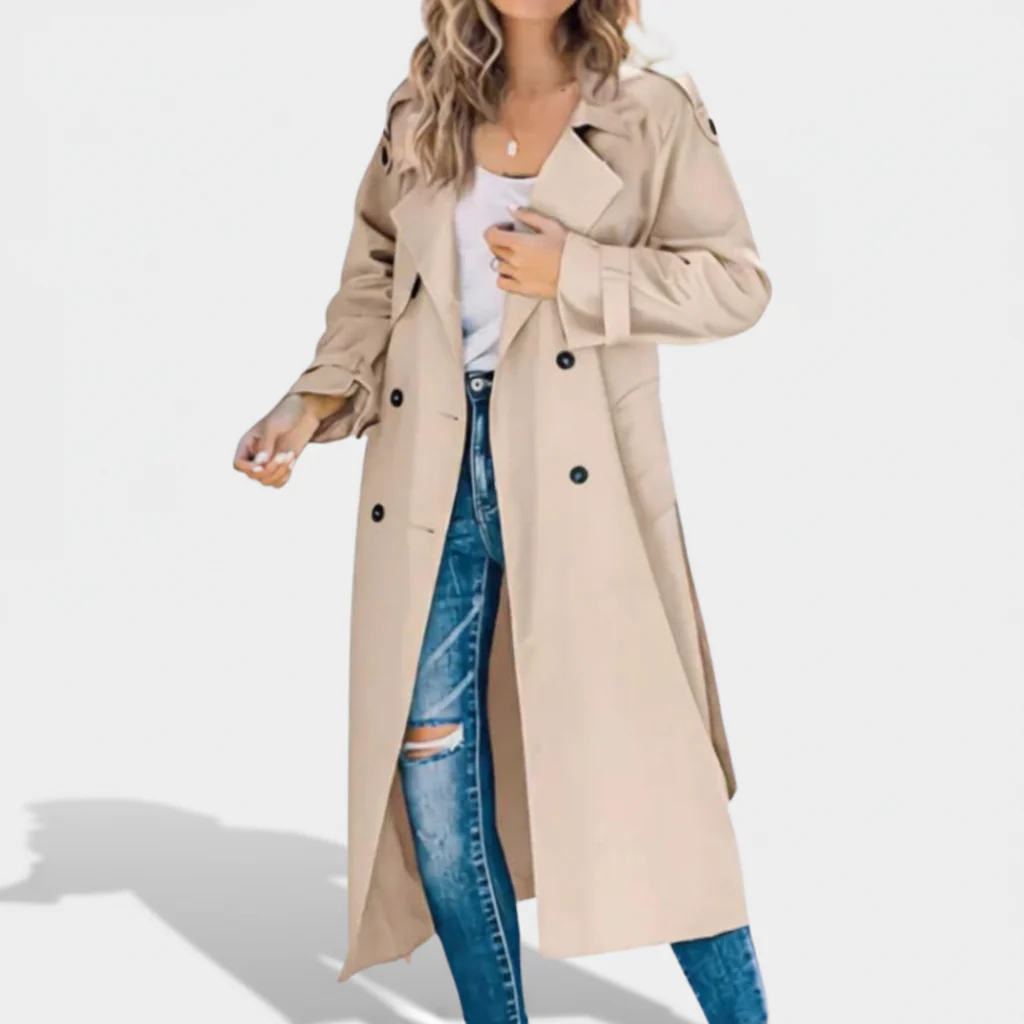 Het is vaak moeilijk om een jas te vinden die zowel stijlvol als geschikt voor dagelijks gebruik is. Dit model lost het probleem op met een lange snit en een klassieke dubbele knoopsluiting. De lichte stofkwaliteit zorgt ervoor dat jij je de hele dag comfortabel voelt. Tegelijkertijd geeft de flatterende pasvorm een moderne en verzorgde uitstraling.