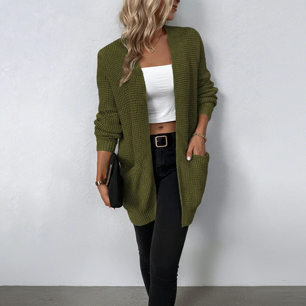 Eindelijk een warme laag die altijd past. Zachte breistructuur ontmoet een ontspannen stijl.