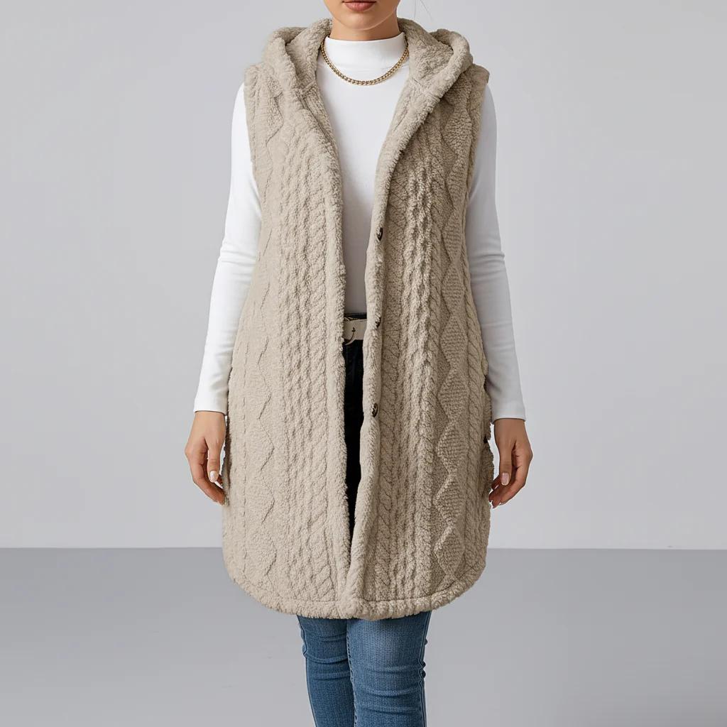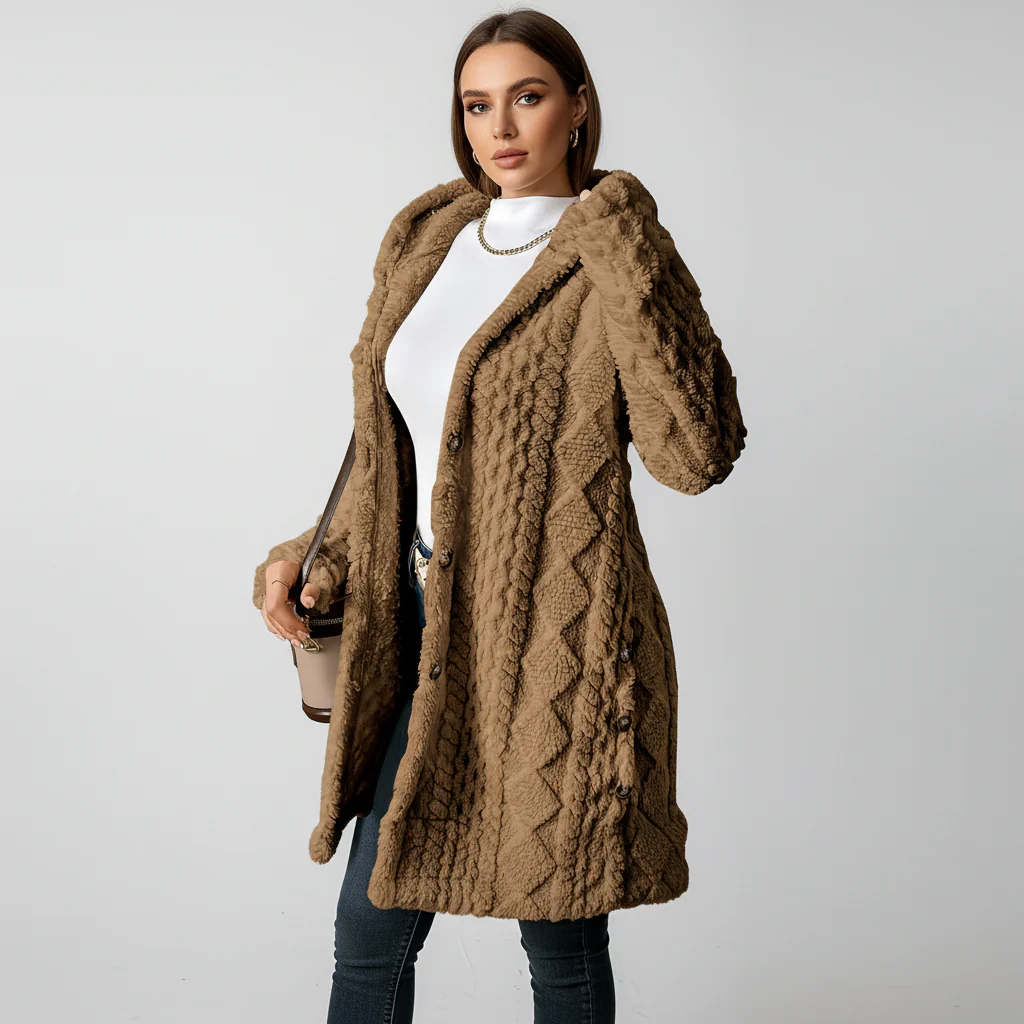 Wanneer de herfstlucht bij elke stap een beetje binnenkomt, ontbreekt vaak het juiste kledingstuk. Dit lange knuffelstuk biedt direct aangename warmte zonder zwaar te lijken. De zachte kunstbontoppervlakte voelt fijn aan op de huid en isoleert betrouwbaar. Een royale capuchon en de lange snit bieden extra bescherming tegen de frisse wind.