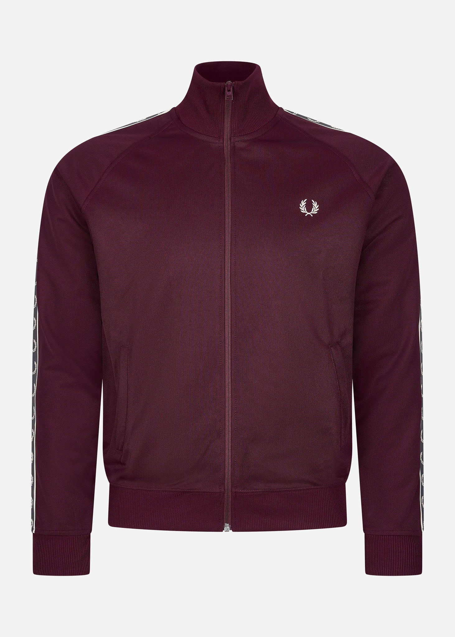 Het Seasonal Taped Track Jacket is een iconisch model uit de collectie van Fred Perry. Dit sportieve vest heeft een volledige ritssluiting en een hoge kraag. Verder is de Fred Perry lauwerkrans klein bevestigd op de borst en in een strook op de mouwen. Ook heeft het vest twee handige zakken.
