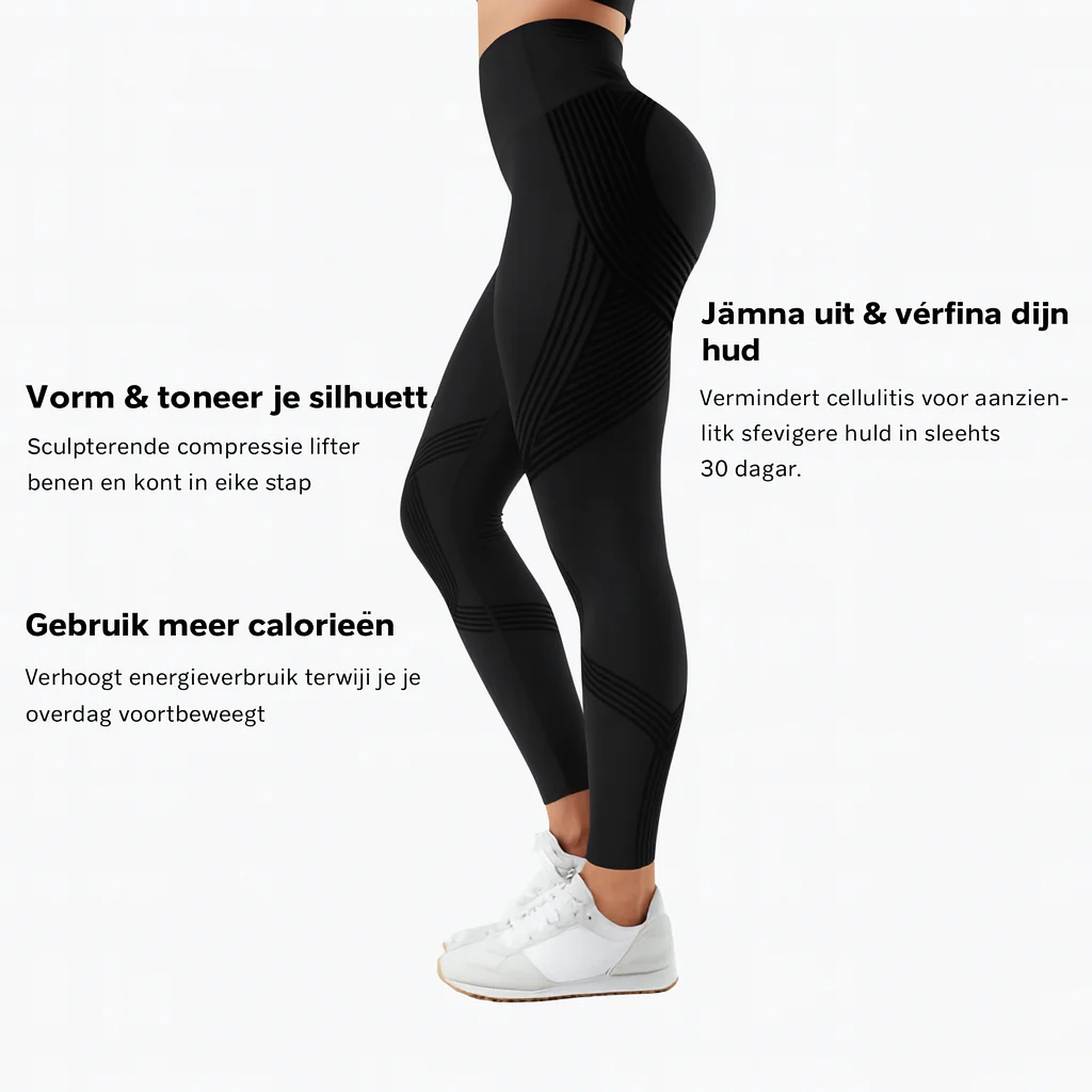 Dankzij de slimme compressietechnologie stimuleren deze leggings de doorbloeding, wat helpt bij het verminderen van zichtbare cellulitis en het verbeteren van de huidtextuur. Draag ze tijdens werk, wandelen of ontspannen en voel het verschil al na een paar dagen.