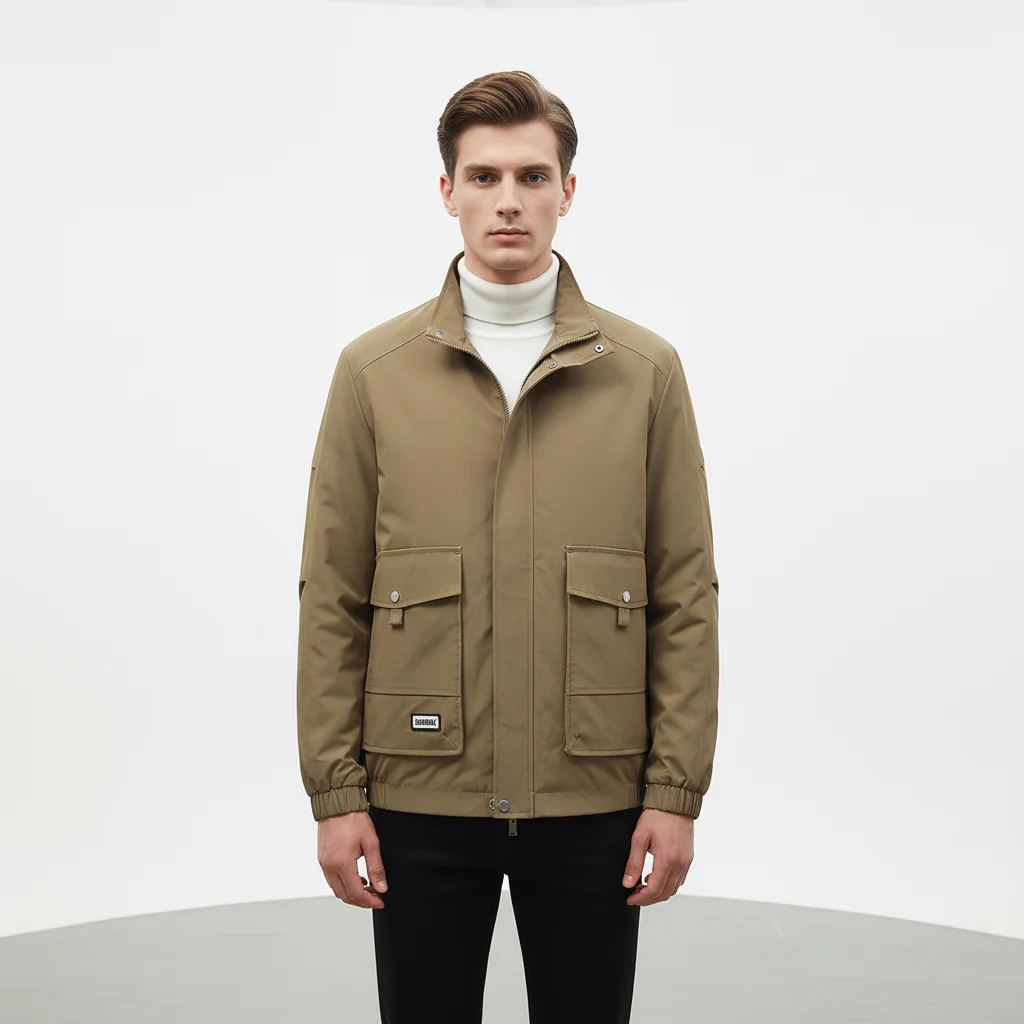 Elke naad en elk detail is zorgvuldig afgewerkt. De jas is duurzaam en bestand tegen wind en weer.