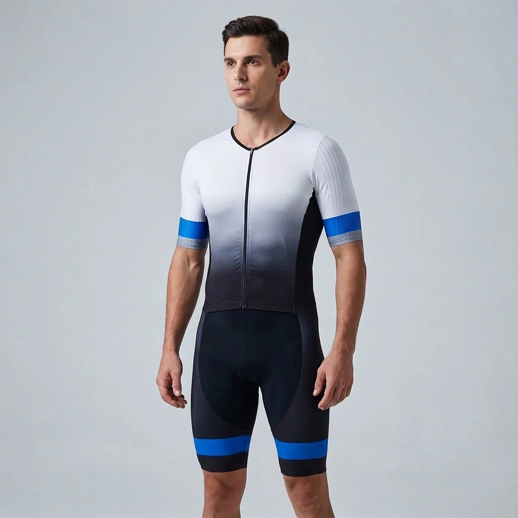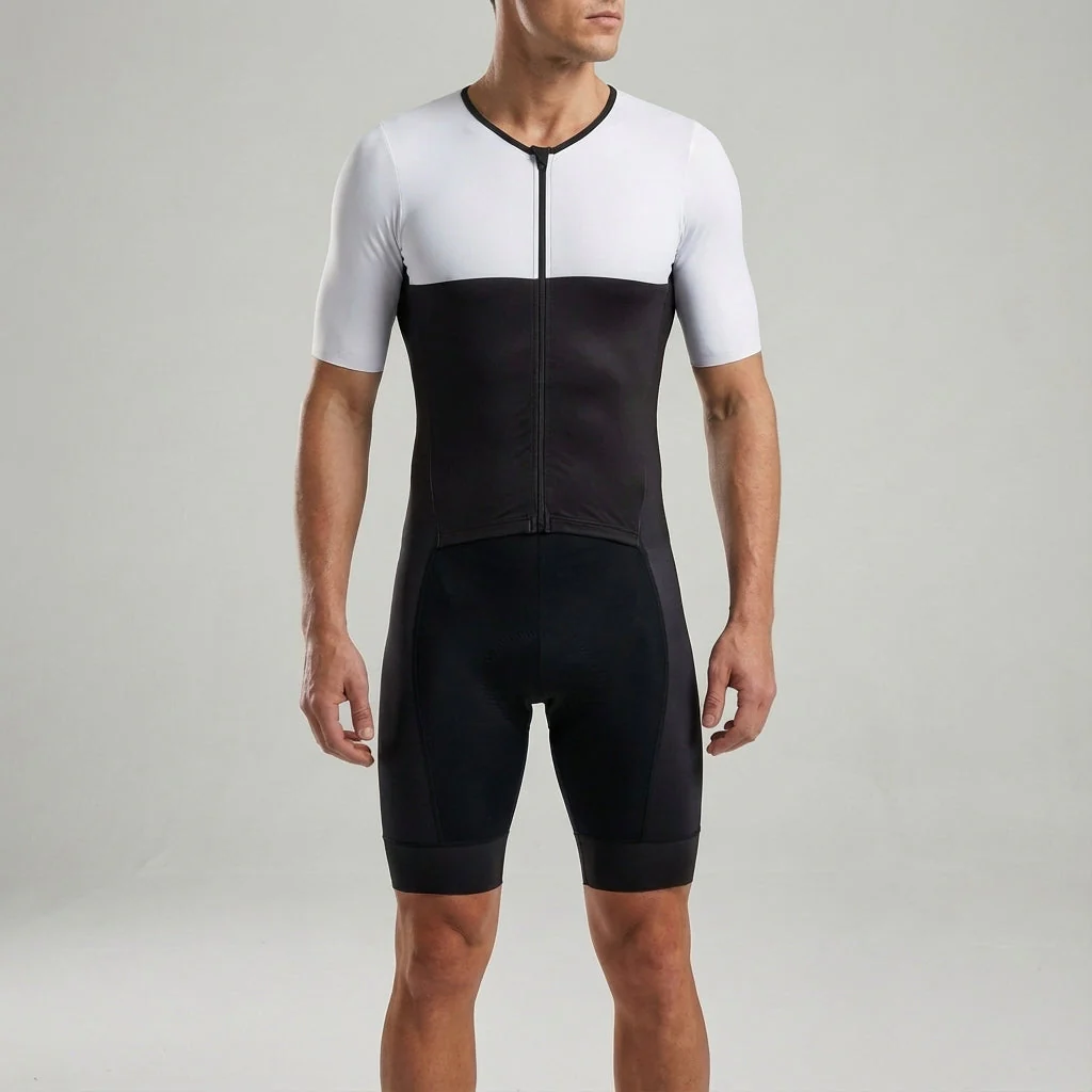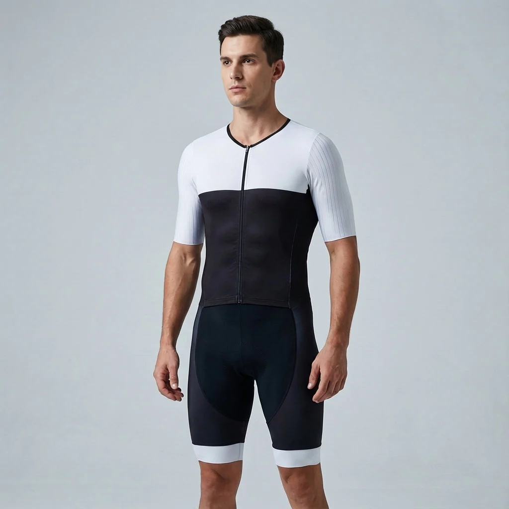 - Uitvoering: Korte mouwen tricot en gepolsterde fietsbroek