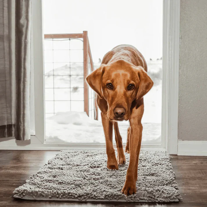 Onze PawMat is dé oplossing tegen vieze poten in huis. Deze ultra-absorberende mat houdt modder, vocht en vuil tegen nog vóór je hond de vloer raakt. De zachte chenillevezels nemen tot 7 keer meer vocht en vuil op dan gewone matten en zorgen ervoor dat je vloer schoon blijft – zelfs op regenachtige dagen. Honden liggen er bovendien graag op, dankzij het comfortabele oppervlak.
