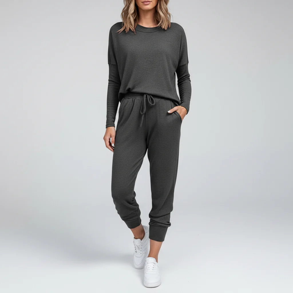 Het kan lastig zijn om een outfit te vinden die stijlvol en tegelijk comfortabel is. Deze zachte, fijne loungewear speelt hier perfect op in en is ideaal voor ontspannen dagen thuis of snelle uitjes. De elastische tailleband en de praktische zakken zorgen voor extra comfort en functionaliteit. De veelzijdigheid van de set maakt het ideaal voor elke gelegenheid, of het nu een winkeluitje is of een bijeenkomst met vrienden.
