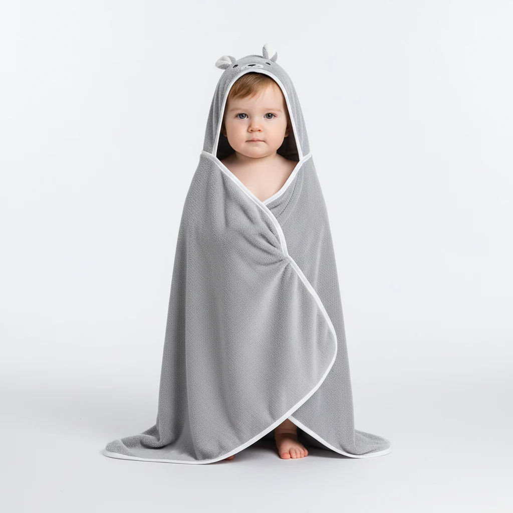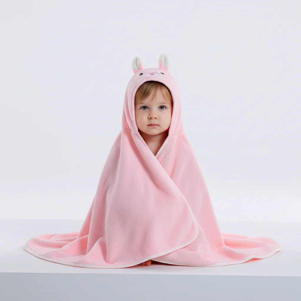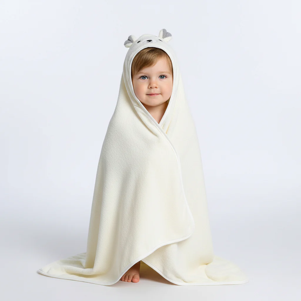 De knuffelbare capuchon zorgt voor vreugde. Perfect voor kleine kinderen die van badtijd houden.