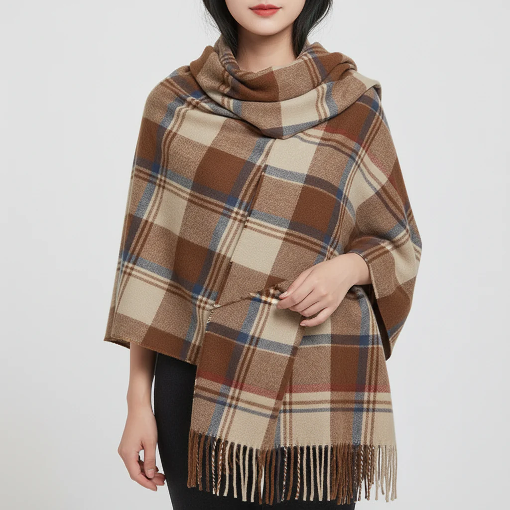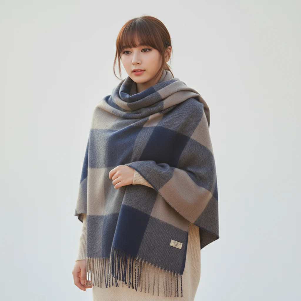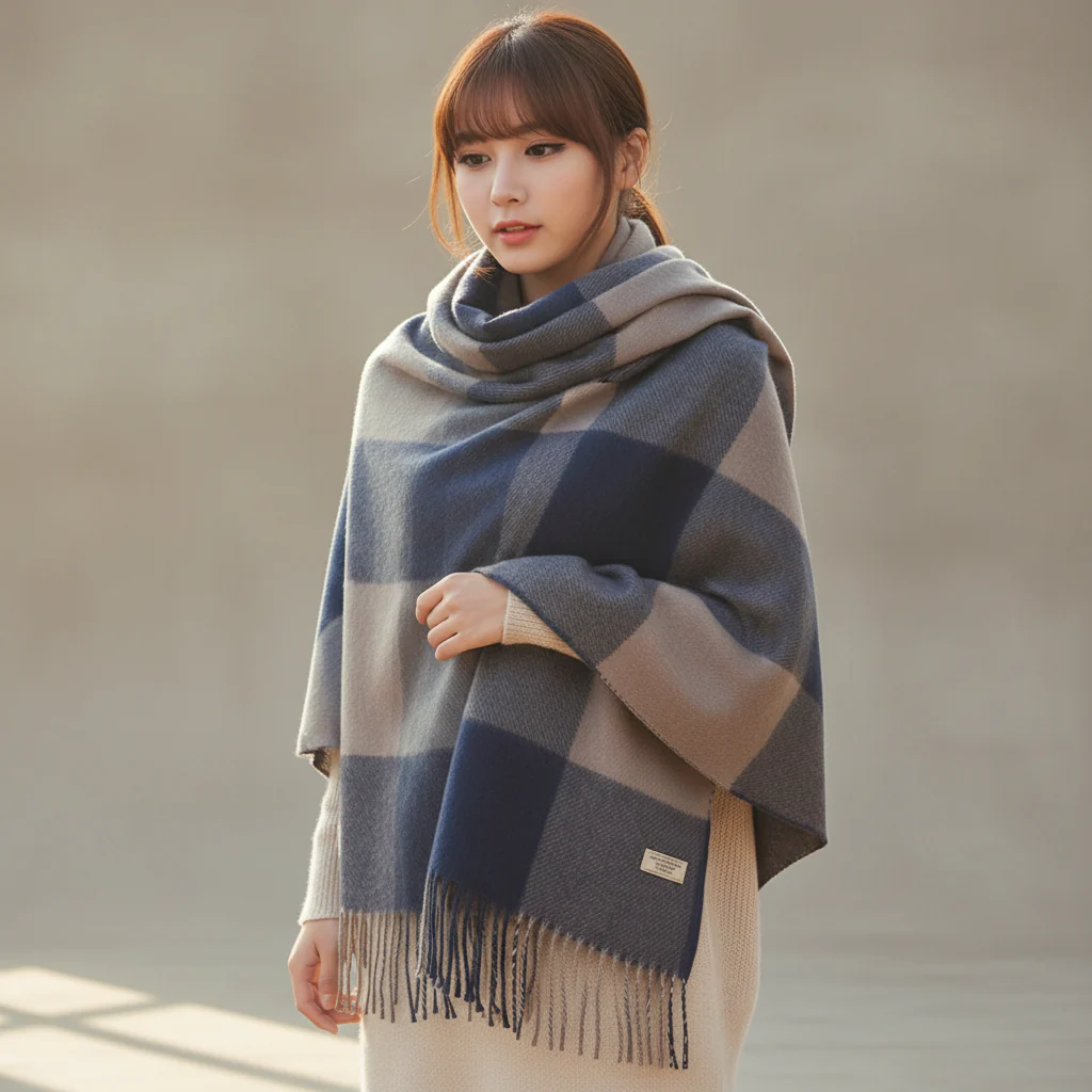 Voel je onmiddellijk ontspannen en stijlvol op koele dagen. Deze sjaal combineert luxueuze zachtheid met een tijdloos ruitenpatroon.