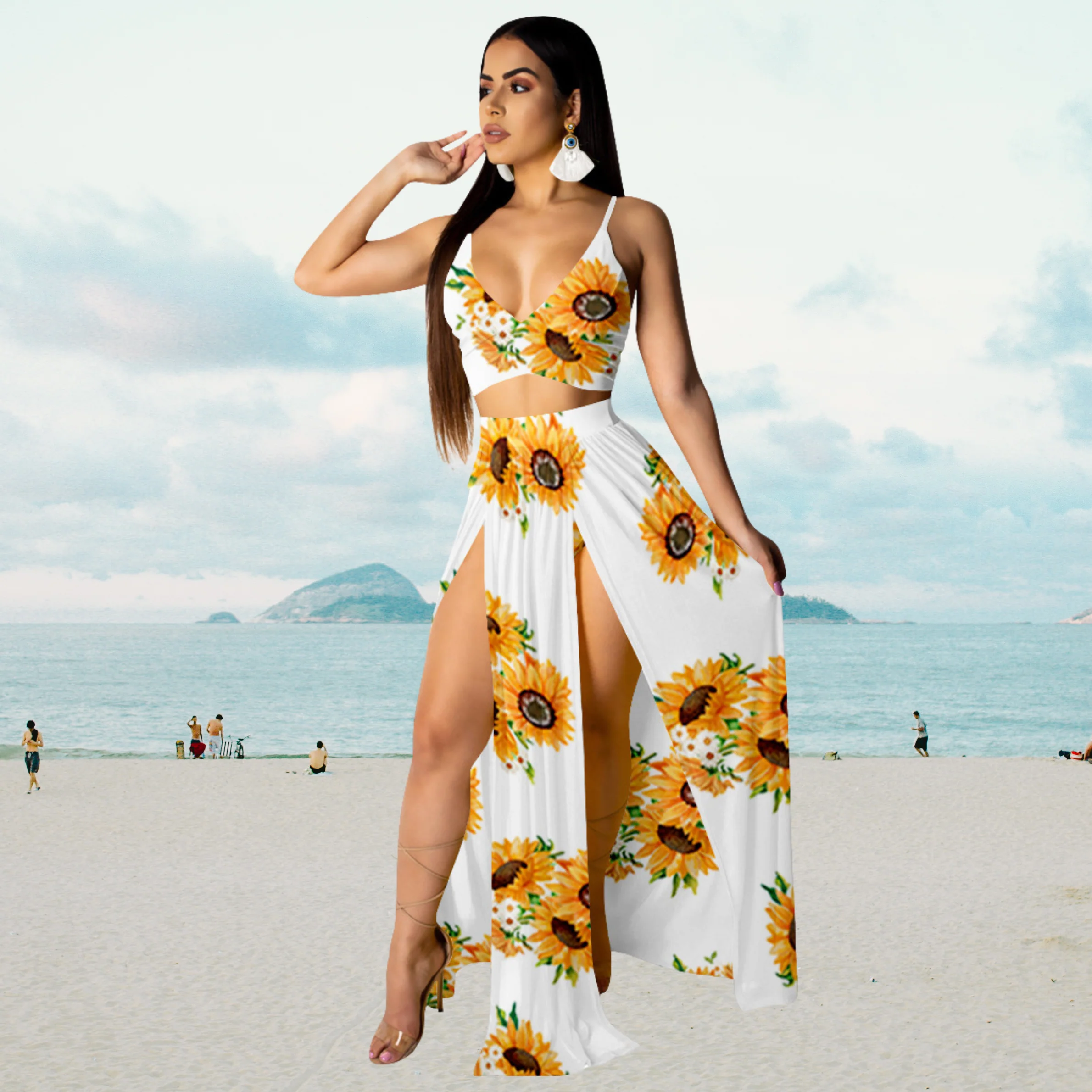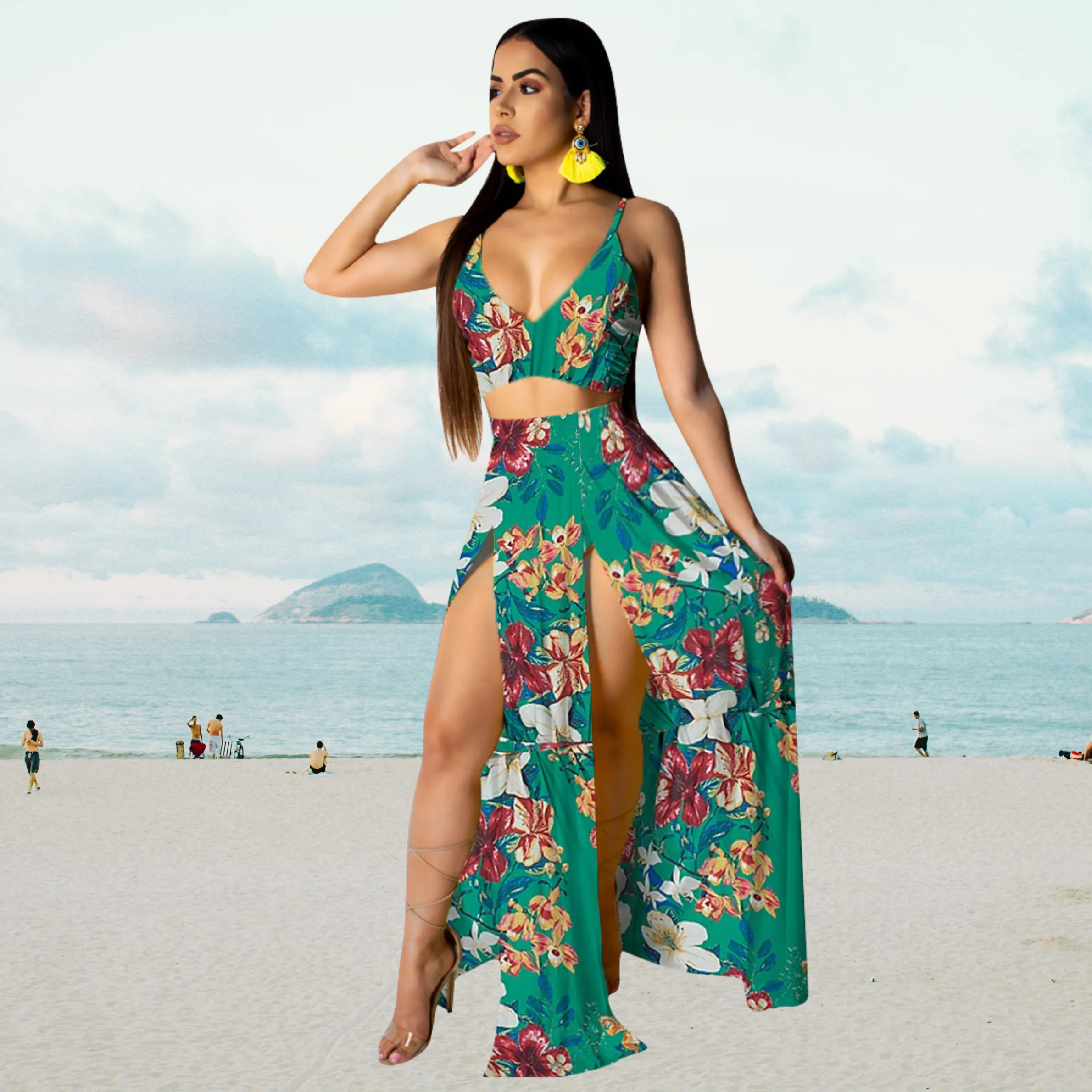 Verleidelijk, stijlvol en vol zelfvertrouwen — dat is onze Naïma. Deze tweedelige zomerset bestaat uit een haltertop en een lange rok met twee hoge splitten die je benen prachtig laten uitkomen. De combinatie van het aansluitende bovenstuk en de vloeiende rok zorgt voor een silhouet dat opvalt zonder overdrijven. Naïma is jouw go-to set voor zomerse avonden, vakanties of wanneer je gewoon wilt stralen.