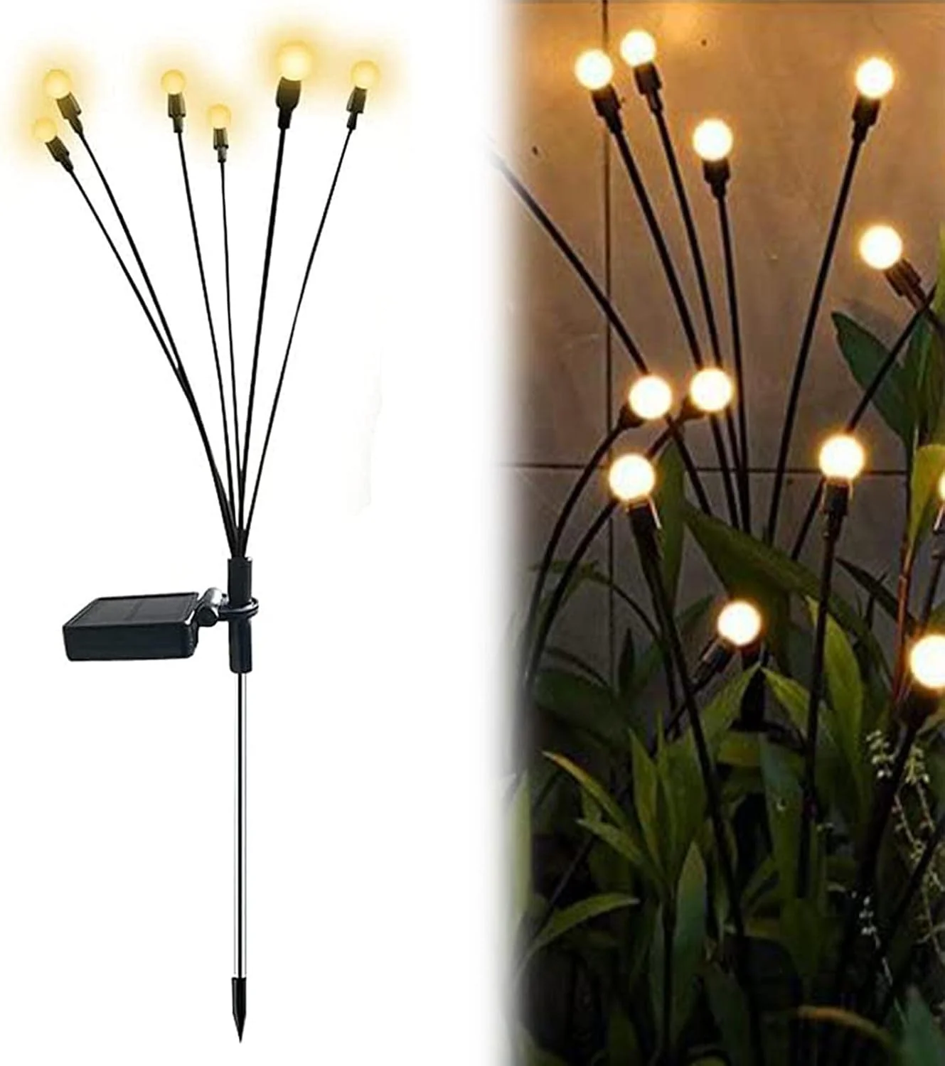 Onze FireGlow is een betoverende set solar tuinlampen die je tuin of balkon omtoveren tot een sprookjesachtig tafereel. Elke lamp is voorzien van zes warmwitte LED-lichtpunten die bij het zachtste zuchtje wind sierlijk bewegen, net als echte vuurvliegjes. Dankzij de zonne-energie laden de lampen zichzelf overdag op en verspreiden ze ’s avonds urenlang een warme gloed. De set is waterbestendig en gemakkelijk te plaatsen zonder kabels of gereedschap. Zo voeg je direct sfeer toe aan je buitenruimte – energiezuinig én onderhoudsvrij.